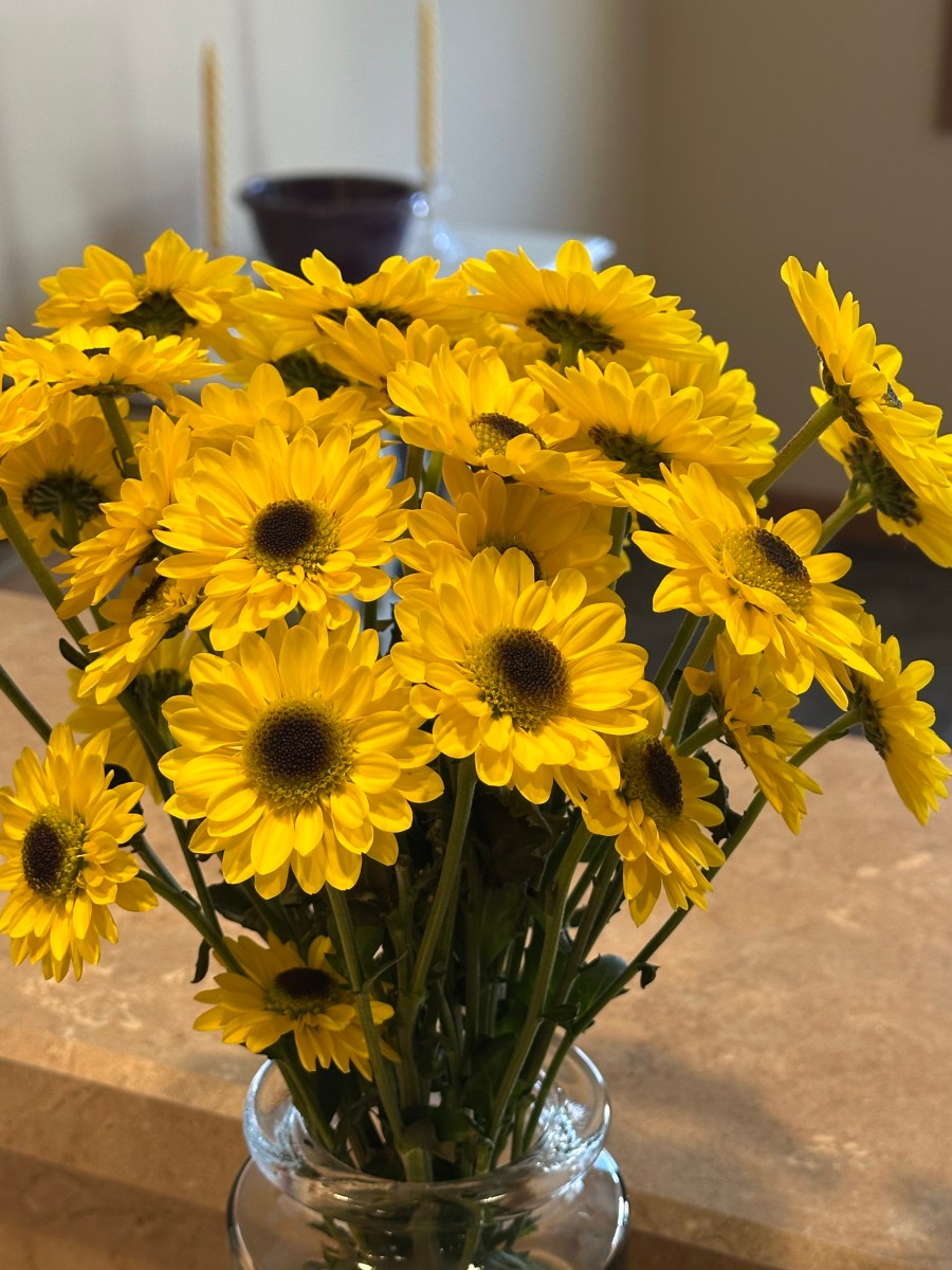 I think that is why I love having a garden, keeping fresh flowers on my kitchen counter each week, like the daisies in my blog photo, or creating little vignettes of objects in my home. Looking at something beautiful uplifts and inspires me. It does as Sr. Joan suggests, help me see God in the world around me. After reading Sr. Joan’s quote, I want to raise my awareness of the beauty I see around me in the world. I want to make a conscious effort of cultivating beauty in my life so that I might create more beauty in the world. It’s going to be a work in progress for sure!