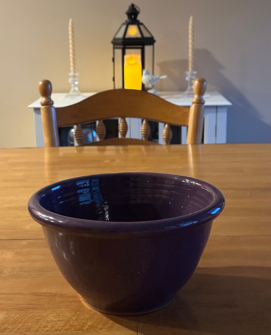 Image: my purple bowl, a visual to remind myself to fill it more consciously and lovingly with things that matter.